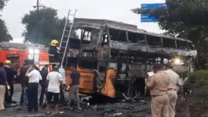 नासिक में दुर्घटना के बाद बस में लगी आग,पीड़ितों को 5 लाख की अनुग्रह राशि देगी सरकार