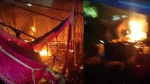 आग लगने से पूरा पंडाल जला, प्रतिमाओं को नुकसान नहीं