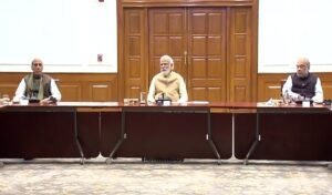 नयी दिल्ली। रूस और यूक्रेन के बीच युद्ध छिड़ गया है। ऐसे में प्रधानमंत्री नरेंद्र मोदी ने गुरुवार को सुरक्षा मामलों की कैबिनेट कमेटी (सीसीएस) की बैठक की अध्यक्षता की। इस बैठक में प्रधानमंत्री मोदी के अलावा रक्षा मंत्री राजनाथ सिंह, विदेश मंत्री डॉ एस जयशंकर, गृह मंत्री अमित शाह, वाणिज्य एवं उद्योग मंत्री पीयूष गोयल, वित्त मंत्री निर्मला सीतारमण, केंद्रीय मंत्री हरदीप पुरी, राष्ट्रीय सुरक्षा सलाहकार अजित डोभाल समेत कई वरिष्ठ नेता मौजूद रहे। इस बैठक का एक वीडियो सामने आया है। सूत्रों से प्राप्त जानकारी के मुताबिक, प्रधानमंत्री मोदी रूस के राष्ट्रपति व्लादिमीर पुतिन के साथ फोन पर बात कर सकते हैं। हालांकि यह बातचीत किस वक्त होगी, इसकी जानकारी सामने नहीं आई है। आपको बता दें कि यूक्रेन संकट पर भारत अपनी पैनी नजर बनाए हुए है। ऐसे में सीसीएस की बैठक में प्रधानमंत्री मोदी के साथ सभी नेताओं ने आगे की रणनीति पर चर्चा की। मोदी सरकार की प्राथमिकता यूक्रेन में फंसे भारतीयों को सही सलामत निकालने की है। हालांकि यूक्रेन ने एयर स्पेस बंद कर दिया है।