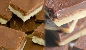 इसके बाद एक मोल्ड लें और उसके उपर एक शीट बिछाएं। अब मोल्ड पर बटर पेपर बिछाएं। वहीं एक दूसरा बाउल लेकर उसमें आधा मिश्रण डालें और कोको पाउडर को उसमें छानें और फिर अच्छी तरह मिक्स करें। अब इस चॉकलेट के मिश्रण को कंटेनर में डालकर अच्छी तरह सेट करें और फिर बचे हुए मिश्रण को उसके ऊपर डालें और चम्मच की मदद से सेट करें। अब इस एयरटाइट कंटेनर में लिड लगाकर करीबन 15 मिनट के लिए सेट होने दें। अब इसे बाउल से निकालें और चाकू की मदद से काटें।