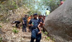 देवघर (झारखंड)। झारखंड के देवघर जिले में त्रिकूट पहाड़ियों को जोड़ने वाली केबल कार में करीब 40 घंटे तक हवा में फंसे 15 पर्यटकों में से दस को वायुसेना के हेलीकॉप्टरों ने सुरक्षित निकाल लिया। वायुसेना के हेलीकॉप्टरों का बचाव अभियान मंगलवार को सुबह फिर से शुरू हुआ। अधिकारियों ने यह जानकारी दी। रविवार की शाम चार बजे ट्रॉली कारों के आपस में टकराने के कारण रोपवे में खराबी आ जाने के बाद,हवा में लटकी केबल कारों से अब तक करीब 50 लोगों को सुरक्षित निकाला गया है। घटना में अब तक दो लोगों की मौत हो चुकी है। इनमें से एक पर्यटक सोमवार को हेलीकॉप्टर से बचाव के प्रयास के दौरान गिर गया था।हादसे में घायल हुए 12 लोगों का अस्पतालों में इलाज चल रहा है। वायु सेना, सेना, भारत तिब्बत सीमा पुलिस (आईटीबीपी), राष्ट्रीय आपदा मोचन बल (एनडीआरएफ) और जिला प्रशासन की संयुक्त टीम द्वारा बचाव अभियान जारी है। देवघर के उपायुक्त मंजूनाथ भजंत्री ने कहा, ‘‘त्रिकूट पर्वत पर रोपवे यात्रा के दौरान फंसे लोगों को वायुसेना और एनडीआरएफ की टीम सुरक्षित निकाल रही है। अब तक सात लोगों को सुरक्षित निकाला जा चुका है।’’ भजंत्री ने कहा कि वायुसेना, सेना, एनडीआरएफ, आईटीबीपी और स्थानीय प्रशासन की टीम ने सुबह बचाव अभियान शुरू किया ताकि फंसे हुए लोगों को बचाया जा सके। सूर्यास्त के बाद बचाव अभियान को रोकना पड़ा क्योंकि रोपवे पहाड़ियों से घिरे घने जंगलों से होकर गुजरता है, जहां वायुमार्ग के अलावा दूसरे मार्ग से पहुंचना मुश्किल है।