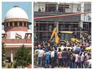 -सुप्रीम कोर्ट में SG यानी सॉलिसिटर जनरल ने कहा कि यहां गुमराह किया जा रहा है राजनीतिक हिट के लिए. रास्ते से अतिक्रमण हटाने के लिये नोटिस की जरूरत नहीं. इस पर सुप्रीम कोर्ट ने पूछा कि क्या जिस पर बुलडोजर चलाए जा रहे हैं वे परमानेंट स्ट्रक्चर नहीं हैं? तो इस पर एसजी ने कहा कि नहीं, ये परमानेंट स्ट्रक्चर नहीं हैं.