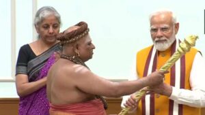 अधीनम महंत ने पीएम मोदी को सौंपा सेंगोल, कल नए संसद भवन में होगा स्थापित