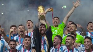 FIFA World Cup 2022: फीफा विश्व कप 2022(FIFA World Cup 2022) की विजेता अर्जेंटीना(Argentina) की टीम बन गई है। गत चैंपियन फ्रांस की टीम को हराकर लियोनेल मेसी(Lionel Messi) की टीम ने तीसरी बार अरंजेंटीना की टीम को फीफा विश्व कप ट्रॉफी उठाने का मौका दिया। कतर में खेला गया विश्व कप का ये सबसे रोमांचक मुकाबला रहा जिसमें विजेता टीम का फैसला पेनल्टी शूटआउट के जरिए हुआ जिसमें अर्जेंटीना की टीम ने 4-2 से फ्रांस को लगातार विजेता बनने से वंचित कर दिया।