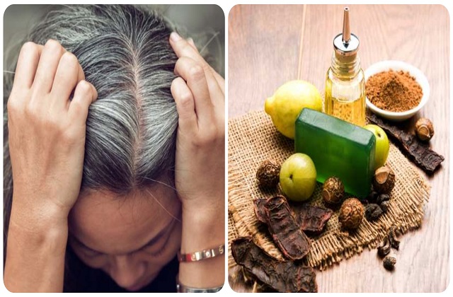 रीठा और शिकाकाई को एक लोहे के बर्तन में रात भर भिगोकर रख दें. अगले दिन उसे निचोड़कर उसका पानी अलग कर लें. उसमें 1/2 चम्मच कच्ची हल्दी और नीम का अर्क मिलाकर कुछ देर मिलाएं और इससे बालों को धोएं. इससे बालों का कालापन बरकरार रहता है.