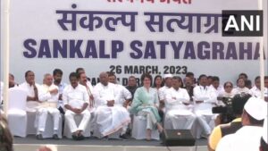 कांग्रेस के पूर्व अध्यक्ष राहुल गांधी को लोकसभा की सदस्यता से अयोग्य ठहराए जाने के विरोध में पार्टी के नेता और कार्यकर्ता रविवार को महात्मा गांधी की प्रतिमाओं के सामने एकदिवसीय संकल्प सत्याग्रह कर रहे हैं। पार्टी के अनुसार, राहुल गांधी के प्रति एकजुटता प्रकट करते हुए यह ‘संकल्प सत्याग्रह’ सभी प्रांतों एवं जिलों में महात्मा गांधी की प्रतिमाओं के समक्ष होगा। इस दौरान कांग्रेस अध्यक्ष मल्लिकार्जुन खरगे, पार्टी महासचिव प्रियंका गांधी वाड्रा और कांग्रेस के कई अन्य नेता दिल्ली में राजघाट पर आयोजित ‘संकल्प सत्याग्रह’ में शामिल होने पहुंचे।