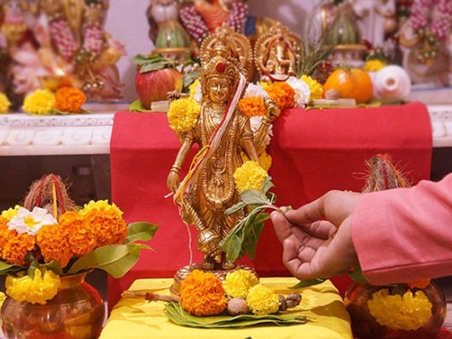इसके बाद पूजा स्थल की अच्छे से साफ सफाई करें। सबसे पहले भगवान विष्णु और माता लक्ष्मी की मूर्ति का पंचामृत से अभिषेक करें और इसके बाद ओम नमो नारायण मंत्र का जप करें। सबसे पहले पुष्प, गंध आदि चीजें भगवान विष्णु को अर्पित करें। माता लक्ष्मी को श्रृंगार का सारा समान चढ़ाएं। उसके बाद उन्‍हें लाल फूल अर्पित करें। अब भगवान को प्रसाद और फल चढ़ाएं। धूप जलाकर भगवान का ध्‍यान करें।