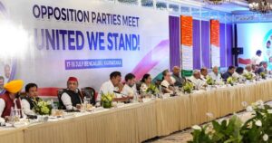 कांग्रेस महासचिव राहुल गांधी ने कहा-‘देश का पूरा धन चुने हुए लोगों के हाथ में जा रहा है। ये लड़ाई और विपक्ष और बीजेपी के बीच में नहीं है। देश की आवाज को दबाया और कुचला जा रहा है। इसलिए ये नाम चुना गया। लड़ाई ‘एनडीए’ और ‘इंडिया’ के बीच में है, नरेंद्र मोदी और इंडिया के बीच में है। यह लड़ाई उनकी विचारधारा और ‘इंडिया’ के बीच है। जो भी देश की विचारधारा के सामने खड़ा होता है हमेशा उसकी हार होती है। हम एक साथ मिलकर देश में अपनी विचारधारा के बारे में बताएंगे।