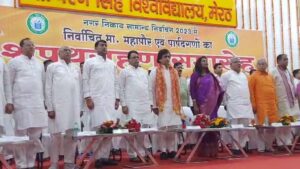 Meerut: मेरठ नगर निगम शपथ ग्रहण के दौरान भारी बवाल हुआ है। मेरठ के चौधरी चरणसिंह विश्वविद्यालय स्थित नेताजी सुभाष चंद बोस प्रेक्षागृह में नवनिर्वाचित महापौर और पार्षदों के शपथ ग्रहण समारोह के शुरू होते ही हंगामा हो गया। वंदे मातरम के दौरान खड़े नहीं होने पर असदुद्दीन ओवैसी की पार्टी AIMIM पार्षदों की पिटाई हुई है। इस दौरान समारोह में खूब हंगामा देखने को मिला। वहां तैनात पुलिस कर्मियों ने किसी तरह पूरे मामले को शांत किया।