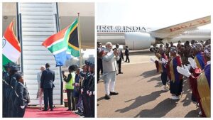 जोहान्सबर्ग में विशेष स्वागत के लिए प्रधानमंत्री ने लोगों को आभार जताया. इससे पहले जोहान्सबर्ग पहुंचते ही पीएम मोदी ने अपने ‘एक्स’ (पहले ट्विटर) अकाउंट पर लिखा, “मैं ‘ब्रिक्स-अफ्रीका आउटरीच’ और ‘ब्रिक्स प्लस डायलॉग’ कार्यक्रमों में भी भाग लूंगा. ब्रिक्स शिखर सम्मेलन ‘ग्लोबल साउथ’ के लिए चिंता का सबब बने मुद्दों और विकास के अन्य क्षेत्रों पर चर्चा करने लिए मंच प्रदान करेगा.”