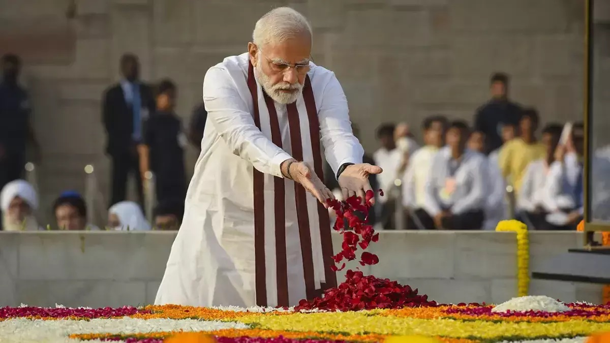गांधी जयंती के मौके पर PM मोदी ने राजघाट पर अर्पित की श्रद्धांजलि