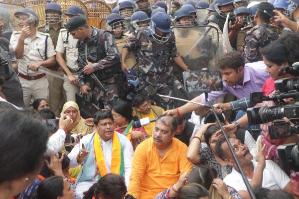 संदेशखाली में हंगामा और तनाव जारी है। संदेशखाली हिंसा के विरोध में वहां पीड़ितों से मिलने जा रहे पश्चिम बंगाल के भाजपा प्रदेश अध्यक्ष और सांसद सुकांत मजूमदार बुधवार को घायल हो गए। पुलिस के साथ धक्मा-मुक्की में वे गाड़ी के बोनट से गिर गए और उनको कमर और अन्य जगह चोटें आईं। संदेशखाली मामले को लेकर पुलिस और भाजपा कार्यकर्ताओं के बीच झड़प हुई थी। आरोप है कि मामले को रोकने के लिए पुलिस ने लाठीचार्ज किया था। सुकांत मजूमदार को बशीरहाट मल्टी-फैसिलिटी हास्पिटल ले जाया गया और फिर बाद में उनको कोलकाता स्थित एक अस्पताल में लाया गया। इस दौरान उनको सांस लेने में भी दिक्कत हो रही थी।